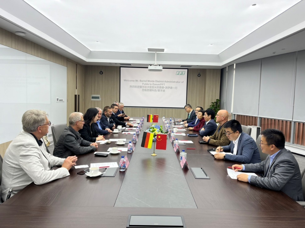Mr. Bernd Woide, Governor of Fulda Region, Germany, visited Shanghai with seven well-known local enterprises from May 10 to 11, 2024, Beijing time. They had a friendly exchange with Fosun International and FFT Production Systems (Shanghai) Co., Ltd. (hereinafter referred to as "FFT (Shanghai)"), a subsidiary of Easun Technology .